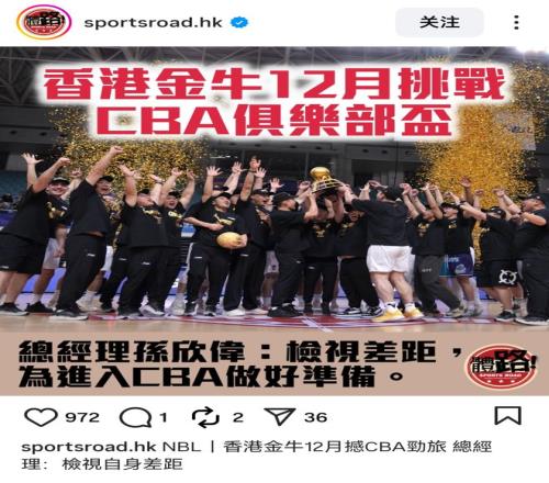 雷速体育10月18日宣 近日,第二届CBA俱乐部杯分组抽签结果出炉,来自NBL的香港金牛首次参赛。据中国香港媒体“体路”报道,香港金牛总经理孙欣伟谈到了球队本次俱乐部杯的目标。